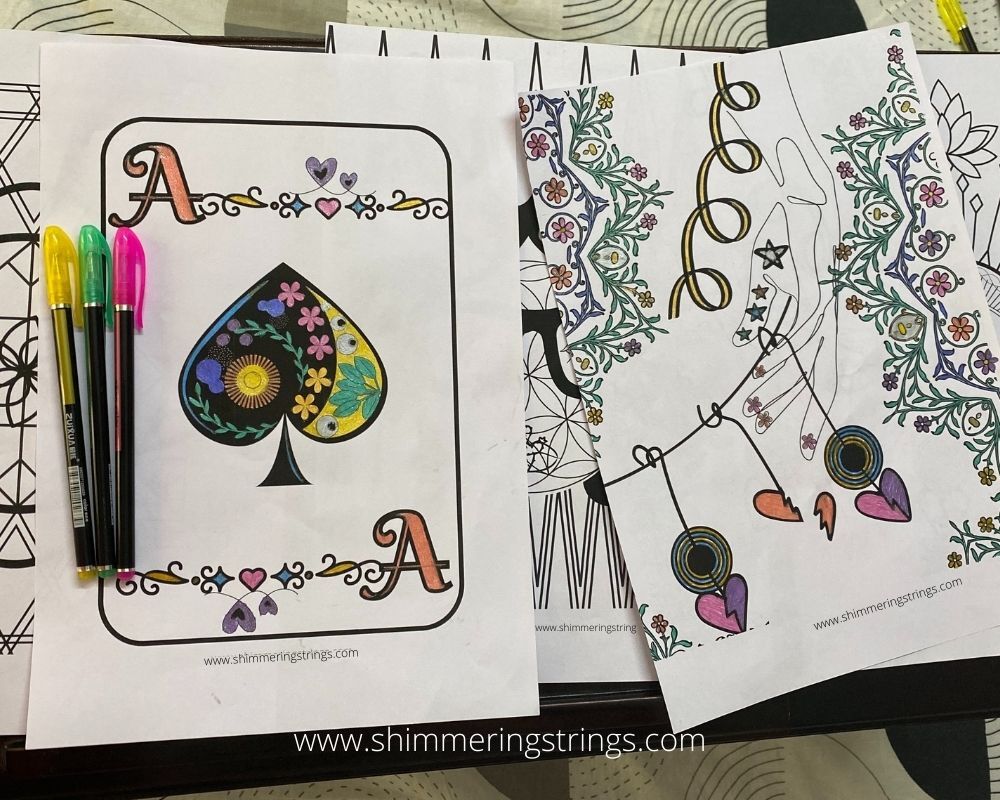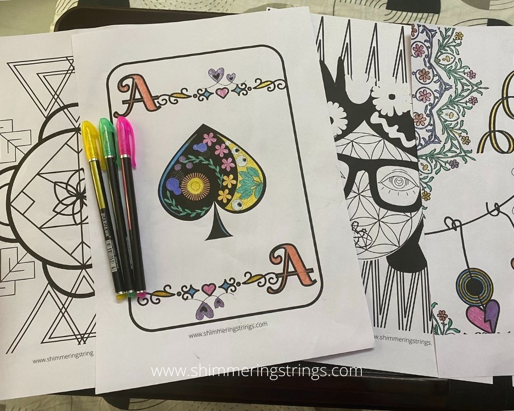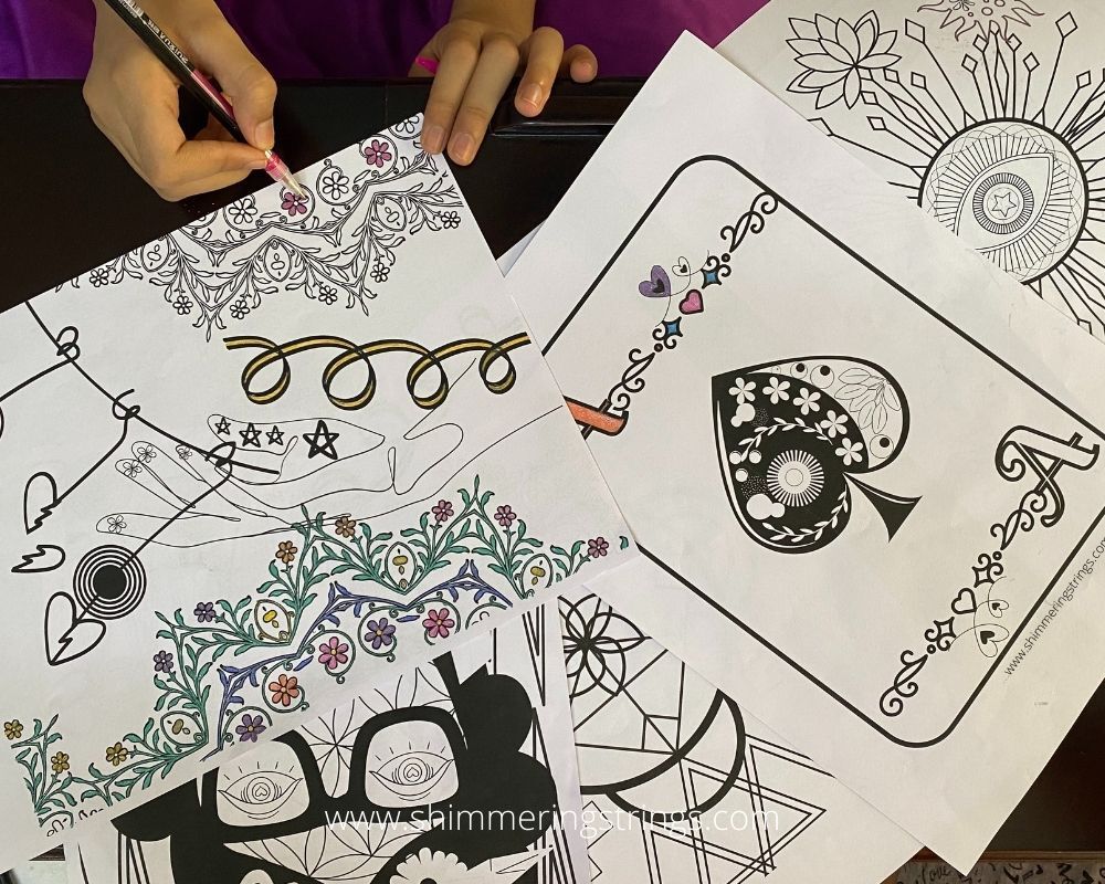 You will get a free printable pdf file of '5 Cool Coloring Pages'. All the pages reflect different moods and themes of art.